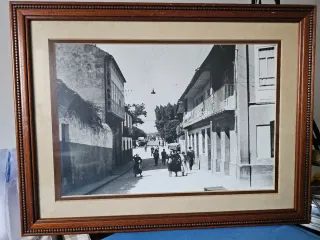 Marco con fotografía antigua de la entrada al pueblo de Noia. Una pieza con encanto para decorar. - Fotografía impresa en papel. - Marco de madera con detalles. Medidas: ancho 59 cm, alto 39cm, fondo 2cm