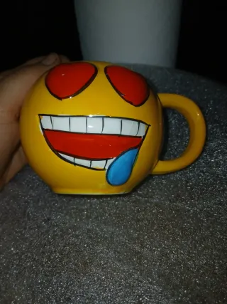 Taza con diseño divertido de emoji. - Forma redonda. - Asa lateral. - Detalles pintados a mano.