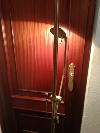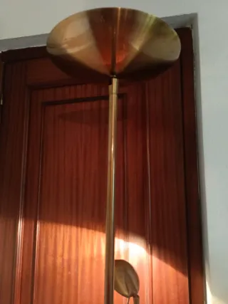 Elegante lámpara de pie con un diseño moderno y sofisticado. - Acabado en bronce pulido. - Base y estructura metálica. - Altura ajustable.