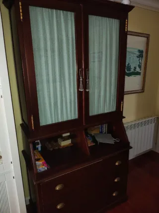 Conjunto de muebles antiguos, un armario y una alacena, ambos fabricados en madera. - Diseño clásico y elegante. - Piezas únicas con historia.