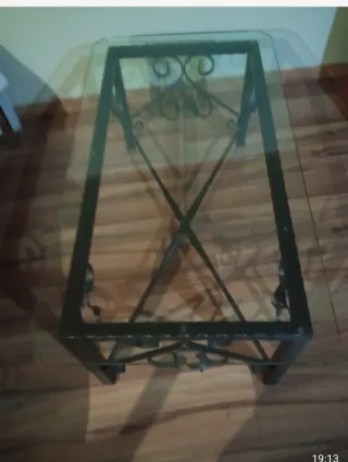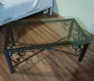 Elegante mesa con estructura de forja y tapa de vidrio. 100x69 - Diseño artesanal único. - Combinación de metal y vidrio.