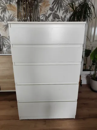 Mueble de almacenaje de la serie MALM de Ikea. Cuenta con cinco cajones amplios para organizar tus pertenencias. - Diseño moderno y funcional. - Acabado liso y fácil de limpiar. Tiene pequeñas marcas de uso, pero se encuentra en muy buen estado. (Fotos)