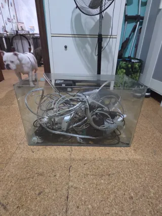 Pecera de cristal y plástico con sistema de bombas incluido. - Acabado negro y transparente.