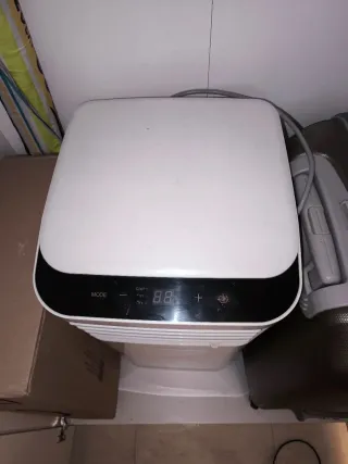 Aire acondicionado portátil de la marca Carrier. - Color plateado. - Fabricado en plástico. Falta el tuvo que envia rl aire caliente a fuera. No se ha usado prácticamente
