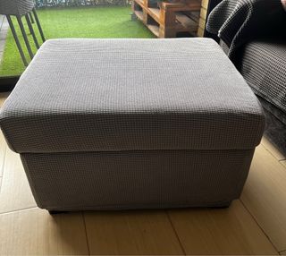 Puff de tela con un diseño moderno y elegante. - Tapizado en tejido texturizado. - Base cuadrada. - Patas discretas.
