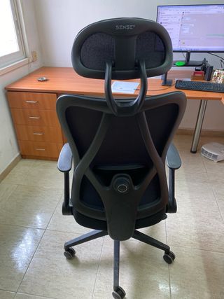 Silla ergonómica SENSE con un diseño moderno y confortable. - Respaldo alto con soporte para la cabeza. - Reposabrazos ajustables. - Base con ruedas para fácil movilidad.