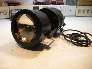 Foco giratorio de la marca Eurolux. Su diseño permite orientar la luz fácilmente. es de discoteca el foco gira todo el rato - Cuerpo principal de metal y plástico. - Lente de cristal.