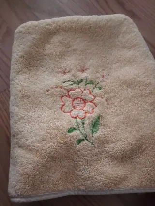 Toalla de color amarillo con un bonito bordado de flores en tonos rosas y verdes. Es un artículo nuevo. - Diseño floral bordado. - Color base amarillo. Envío en 24/48h. Nueva a estrenar. Más cositas en mi perfil 🤩.