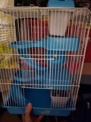 Jaula de varios niveles para hámster o ratón, con accesorios incluidos. - Estructura de alambre con base y accesorios de plástico. - Incluye túneles y plataformas. - Bandeja inferior para facilitar la limpieza.