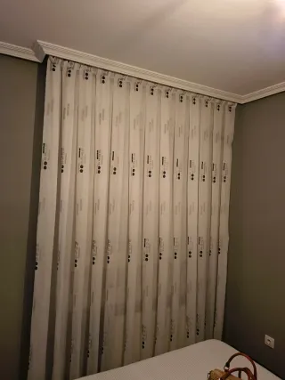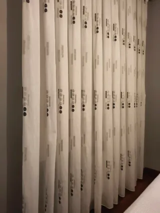Cortinas de tela con un diseño moderno y elegante. Perfectas para cualquier habitación. MEDIDAS:1'80 centímetros de ancho 2,46 centímetros de largo - Diseño con puntos y líneas. - Fabricadas en poliéster.