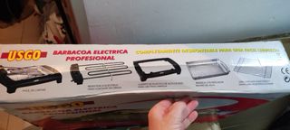 SIN ESTRENAR. Barbacoa eléctrica profesional con termostato regulador y soporte de gran utilidad. Ideal para disfrutar de tus comidas al aire libre. - Diseño moderno en negro y rojo. - Estructura metálica y componentes de plástico de alta calidad.