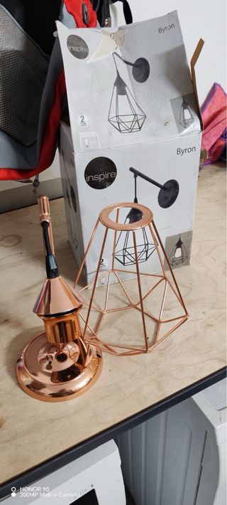 Elegante lámpara de pared con un diseño geométrico moderno. Su acabado en tono cobre le da un toque sofisticado. - Estructura metálica. - Color dorado rosado. Dispongo de dos unidades