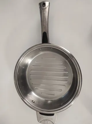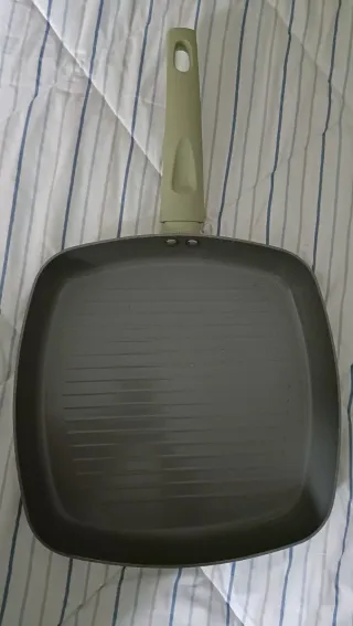 Plancha sartén con recubrimiento antiadherente. 24cm Usado 1 vez - Superficie de cocción con líneas. - Mango ergonómico.