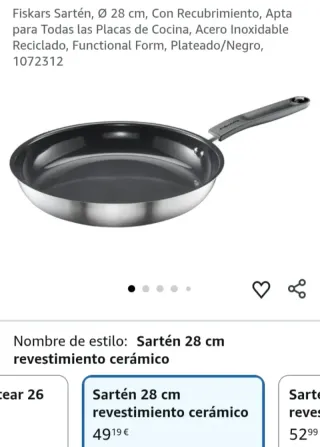 Fiskars Sartén, Ø 28 cm, Con Recubrimiento, Apta para Todas las Placas de Cocina, Acero Inoxidable Reciclado, Functional Form, Plateado/Negro, 1072312 Marca FISKARS MaterialAcero inoxidable Función especialse_puede_usar_en_cocina_de_inducción ColorNegro/Plata Dispositivos compatiblesTodos los tipos de placas de cocción Cuidado del productoSolo lavado a mano