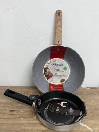 Pack de sartén y wok de la marca San Ignacio. Incluye dos piezas para diferentes tipos de cocción. - Sartén Masterpro by Carlos Maldonado. - Wok Luna de 28cm. - Revestimiento antiadherente ILAG PREMIUM.
