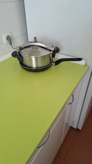 Se vende olla a presión de 7.5L Fagor junto con una sartén. entrega metro puente de valecas carefur - Olla a presión de metal y plástico. - Sartén de metal y plástico.