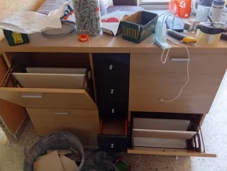 Regalo muebles de cocina (cajones y armarios - Muebles de madera con tiradores negros. - Encimera de marmol pintada de blanco. No incluye electrodomesticos Para desarmar y retirar en Segur de Calafell entre 20 y 25 Febrero.