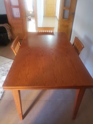 Mesa de comedor de madera con un acabado cálido y natural. - Diseño elegante y funcional. - Patas robustas para mayor estabilidad.