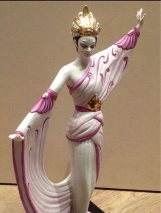 Elegante figura de estilo Art Déco, creada por Vittorio Sabadin y con sello de Capodimonte. Una pieza de colección que evoca la gracia y el movimiento. - Diseño inspirado en la danza. - Detalles en relieve y acabados con pintura de oro 24K. Vendo figura de porcelana ART DÉCO con porcelana original de Capodimonte, Italia y sobre peana de madera. S XX. Años 80-90. Es una de las porcelanas mas finas del mundo. Sin resina. Mujer con tocado. Figura de GRAN LUJO. Made in Italy. Medidas: 41 cm de alto. Base: 19,5 cm x 16,5 cm A la figura le falta algun dedo. No envios. Entrega en mano en Barcelona. No negociable.