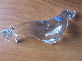 Preciosa figura de foca de unos 18 cm de longitud, con sello y certificado de cristal de Bohemia de la República Checa, con su caja original y en perfecto estado.