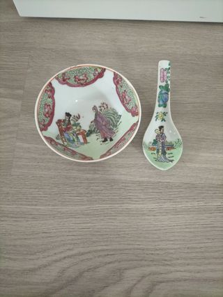 Cuenco porcelana china pintado a mano sellado