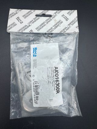 Juego original, referencia AI0016300R, 15,2 x 7,9 x 2,8 cm 📍Producto nuevo, sellado, sin abrir Material: acero de color metálico/cromado resistente a la corrosión Compatibilidad: modelos originales de la serie Victoria de Roca Incluye todo lo necesario para un montaje rápido Calidad Roca garantizada