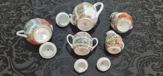 15€ TODO EL LOTE. 3€ LA AZUCARERA ROTA con su tapa. 6€ LA TETERA. 5€ LA LECHERA. 5€ LA AZUCARERA CON UNA TAPA DE MAS. Solo hay una azucarera que se rompió y está reparada La tapa y el resto están bien, tetera o cafetera, lechera y azucarera con una tapa de más. Porcelana o ceramica China de las islas de Macao, de la familia rosa, con sello en la base. famosa por su ceramica cáscara de huevo, pintadas a mano, vintage de los años 1970. Más colección de Macao en mi perfil. Se pueden combinar lotes negociando precio.