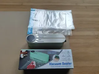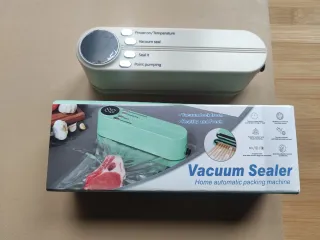 Máquina selladora de vacío para el hogar. Mantiene los alimentos frescos por más tiempo. - Incluye bolsas de sellado. - Panel de control con funciones de Power on/Temperature, Vacuum seal, Seal it y Point pumping. - Diseño compacto y moderno. - Nuevo, no estrenado.