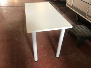 Mesa de escritorio con un diseño moderno y funcional. Dispongo de 2 unidades. - Patas de metal y detalles en plástico. - Superficie lisa y fácil de limpiar.