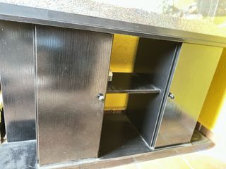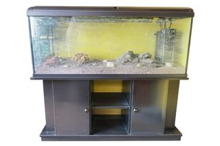 Acuario completo con su mueble a juego. Medidas: 1,20ancho y alto 1,10cm de alto. - Acuario de cristal transparente. - Mueble de color negro
