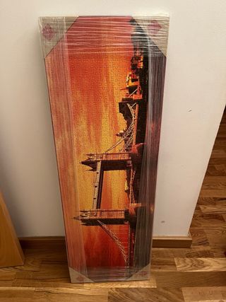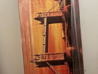 Cuadro realizado con un puzzle del Tower Bridge de Londres. La imagen muestra el puente con tonos cálidos.