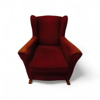 Sillón mecedora de tela rojo