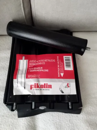 Juego de 4 patas metálicas desmontables para diván y guardaespalda. Son de la marca Pikolin y tienen un diseño cilíndrico. - Fabricadas por Pikolin, S.A. - Referencia: 3730 - Montaje sencillo atornillando a la base.