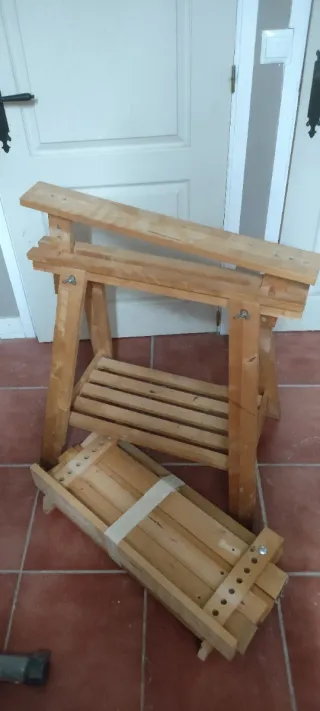 Par de caballetes de madera de Ikea. Son robustos y fáciles de montar. - Estructura de madera. - Diseño funcional.