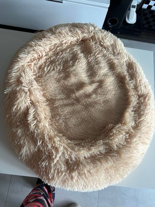 Cama para mascotas de tacto muy suave y mullido, ideal para el descanso de tu perro. - Material exterior de pelo sintético. - Relleno interior que proporciona confort. - Diseño envolvente.