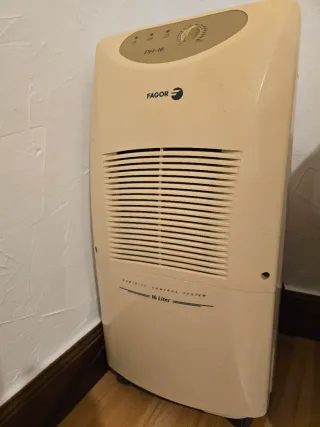 Deshumidificador Fagor DH-16 con capacidad de 16 litros. Ideal para controlar la humedad en tu hogar. - Capacidad: 16 litros. - Modelo: DH-16. - Color: Beige. Beige por estar amarilleado del tiempo, funcionando correctamente, el enchufe fue cortado (estuvo en una tienda de ropa), solo entrega en mano, mo marear, no regatear, a este precio es un regalo siendo de compresor.