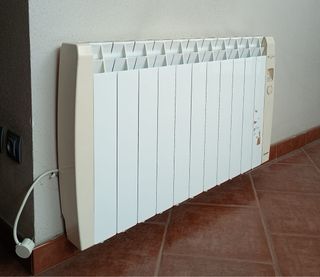 Radiador eléctrico de la marca Siemens, con un diseño elegante en color beige y blanco. - Fabricado en metal resistente. - Ideal para calentar estancias.