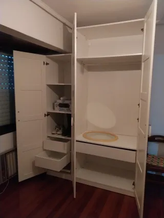 Armario habitación, compuesto por dos modulos (se pueden vender por separado): 1- Módulo de 2010x500x600mm de una puerta. 2- Módulo de doble puerta de 2380 x1000x600mm. Cajones interiores, según foto. Transporte por el comprador.