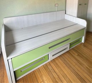 Cama nido funcional con espacio de almacenamiento integrado. Ideal para optimizar el espacio en habitaciones. ** El comprador será quien se encargue de la recogida y desmontaje en el domicilio. ** Existe posibilidad de comprar la habitación completa a juego, más en mi perfil