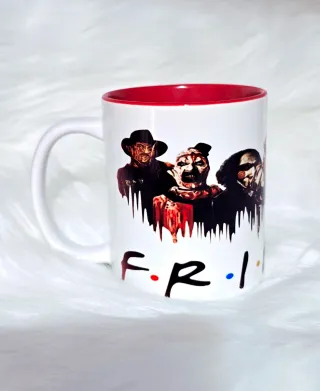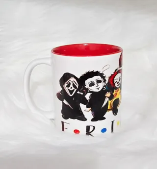 Taza disponible con diseño Friends Horror. Puedes personalizar la tuya con el nombre y tu equipo favorito, película, anime, dibujo animado, etc. Personalizar desde 13€ ¡REGALOS PERFECTOS!