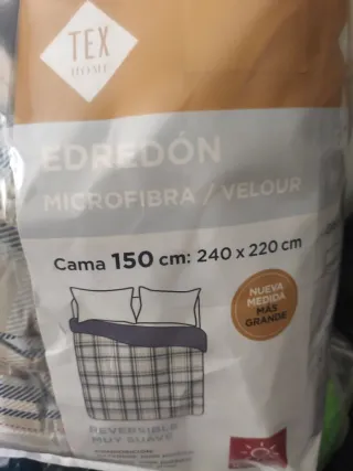 Edredón para cama de 150 cm, con medidas de 240 x 220 cm. Es reversible y muy suave al tacto. - Tejido exterior 100% poliéster. - Tejido interior 100% poliéster. - Nueva medida más grande.