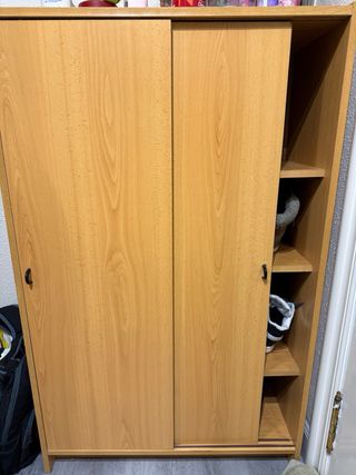 Armario de madera con puertas correderas. - Diseño moderno y funcional. - Amplio espacio de almacenamiento.