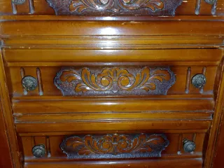 Mueble de madera con cajones y espejo
