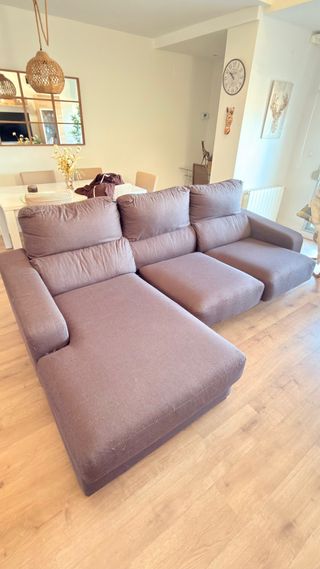 Se vende sofá rinconera amplio y muy confortable, ideal para familias o para quien quiera espacio de sobra para relajarse. Tapizado en tela gris, elegante y fácil de combinar con cualquier estilo de salón. ✔️ Muy cómodo, con asientos amplios y respaldo acolchado ✔️ Incluye cojines decorativos y rulos ✔️ Estructura firme y estable ✔️ Limpio y bien cuidado, sin roturas ni hundimientos 📏 Medidas aproximadas: • Lado largo: 290 cm • Lado corto: 260 cm • Fondo: 90 cm Perfecto para ver películas, descansar o recibir visitas. 📍 Recogida en mano.