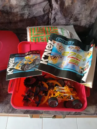 Baul construcción K,nex Classic con piezas y manuales para figuras y coches. Es antiguo pero en buen estado