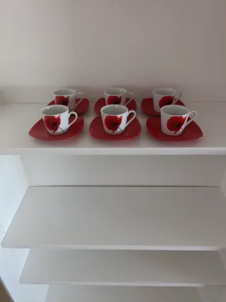 Juego 6 Tazas Café Porcelana Roja