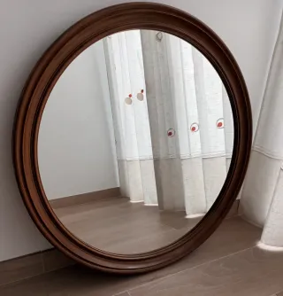 Elegante espejo redondo con un marco de madera y cristal. Mide 75 cm - Marco de madera con acabado natural. - Cristal reflectante de alta calidad.