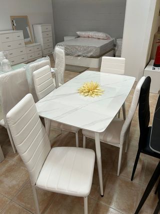 Mesa de Comedor + 4 Sillas Efecto Mármol