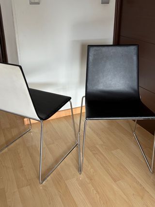 Conjunto de cuatro sillas Lineal Andreu World bicolor blanco y negro. Para retapizar, pieltech pelada. Apilables las 4