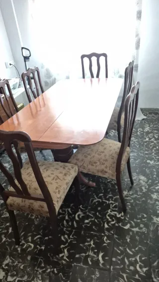 Armario, recibidor, mesa y 6 sillas antiguas